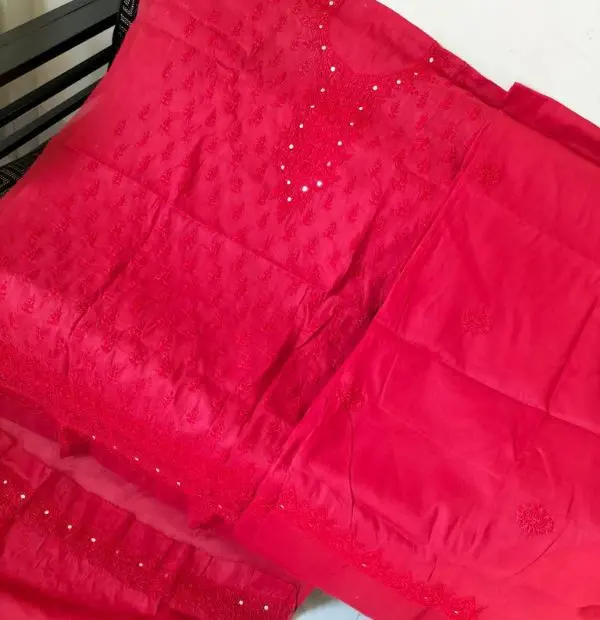 হাতের কাজের টুপিস।। ১০০% কোয়ালিটি ভালো।। Description : কাপড় : প্রাইড কটন। জামা : সারে তিন গজ কাপড়। ওড়না : আড়াই গজ কাপড়।